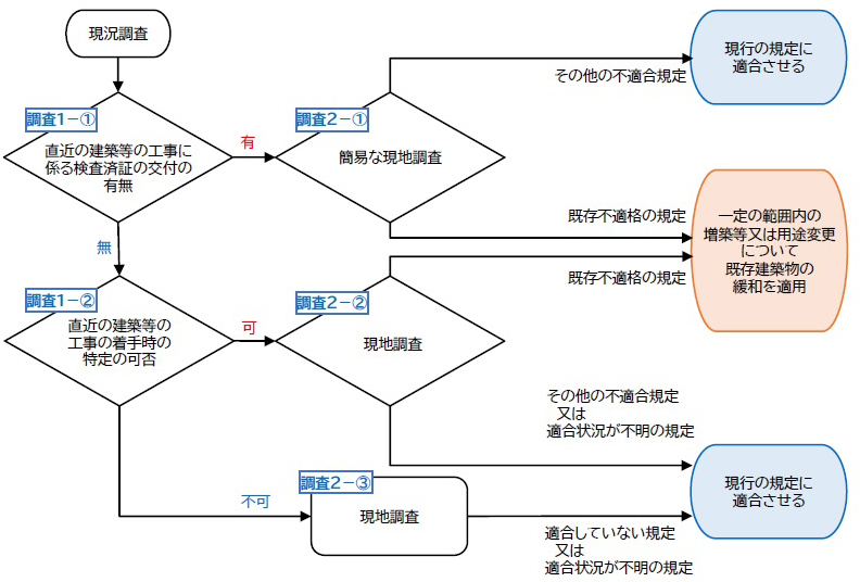 2025年4月から建築基準法が改正となり、大規模なリフォームを行う場合も工事前の「確認済証」が新たに必要になりました。そもそも「検査済証」の無い既存住宅は違法扱いとなり「確認済証」をもらうことができませんが、それでは多くの古い住宅の工事が出来なくなってしまうため、国は下図のような救済策を打ち出しています。「検査済証」や「確認済証」の無い既存住宅でも、決められた調査や改善策を施せば、法的に認めるというものです。