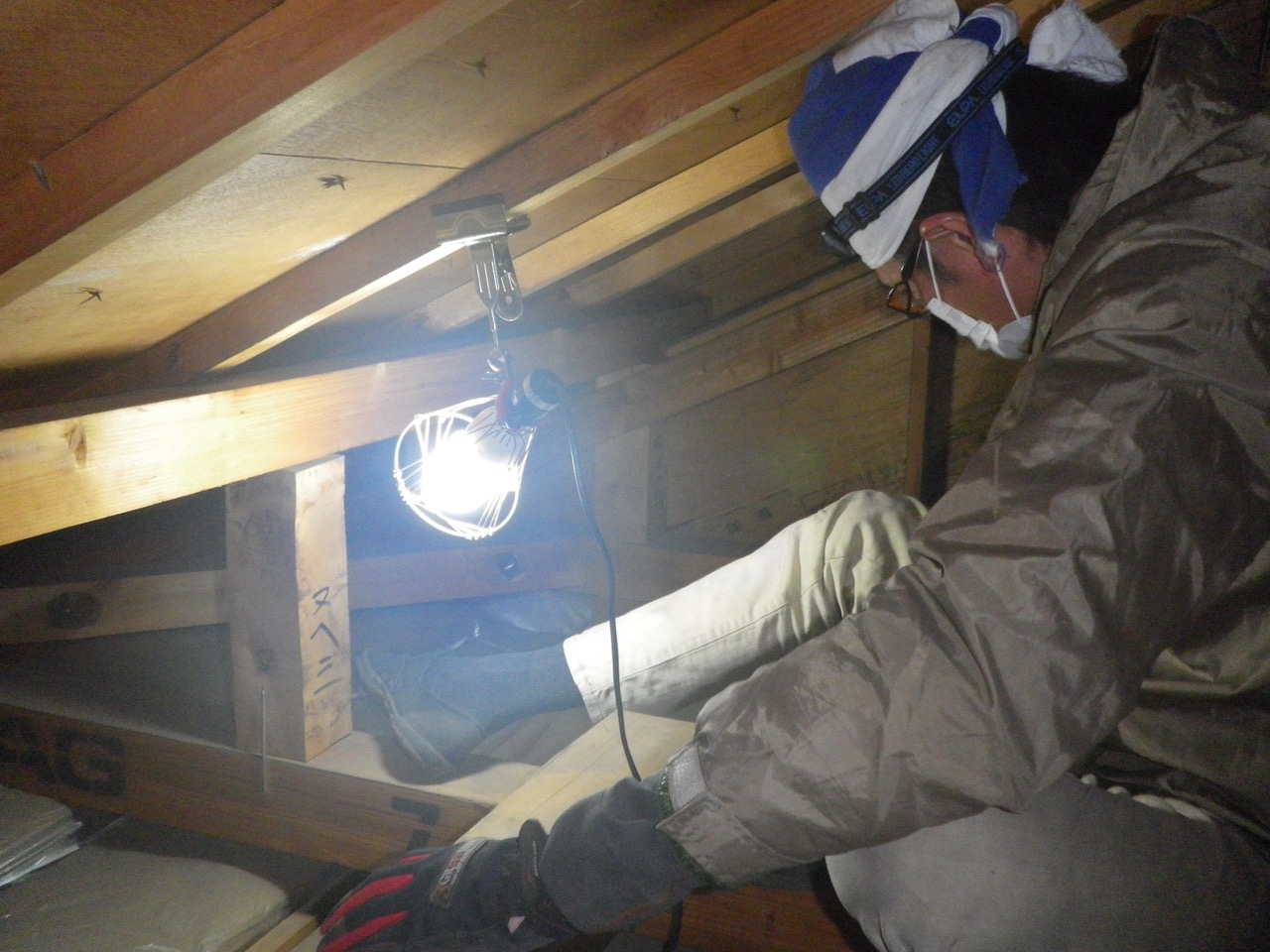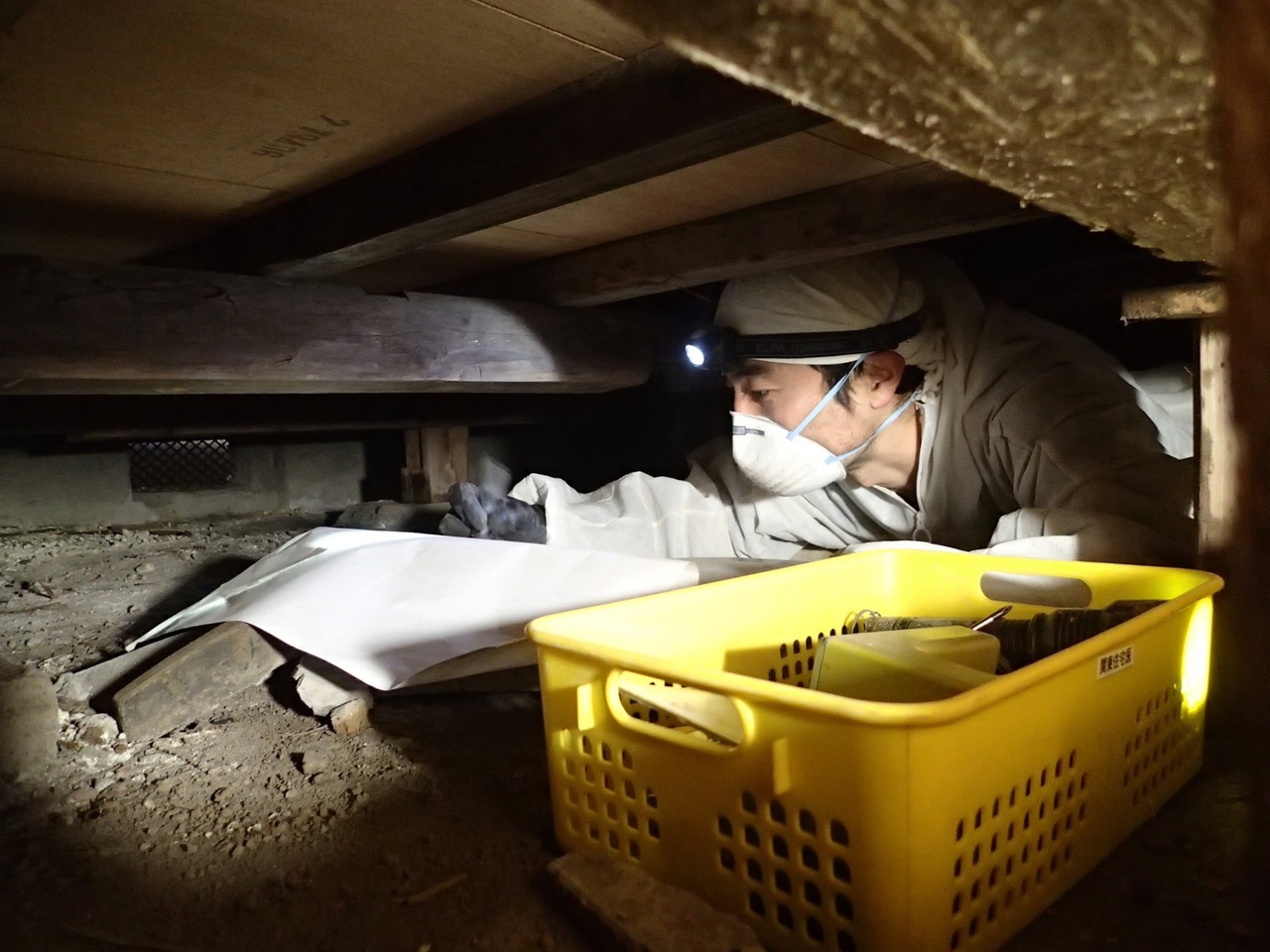 また、古い住宅では、現在の基準に比べて耐震性能が十分でない場合もあり、大きな地震への不安につながります。調査の際には小屋裏や床下に入り、柱や梁の状態、金物の有無などを調べ、どの程度の耐震性能があるか確認していきます。