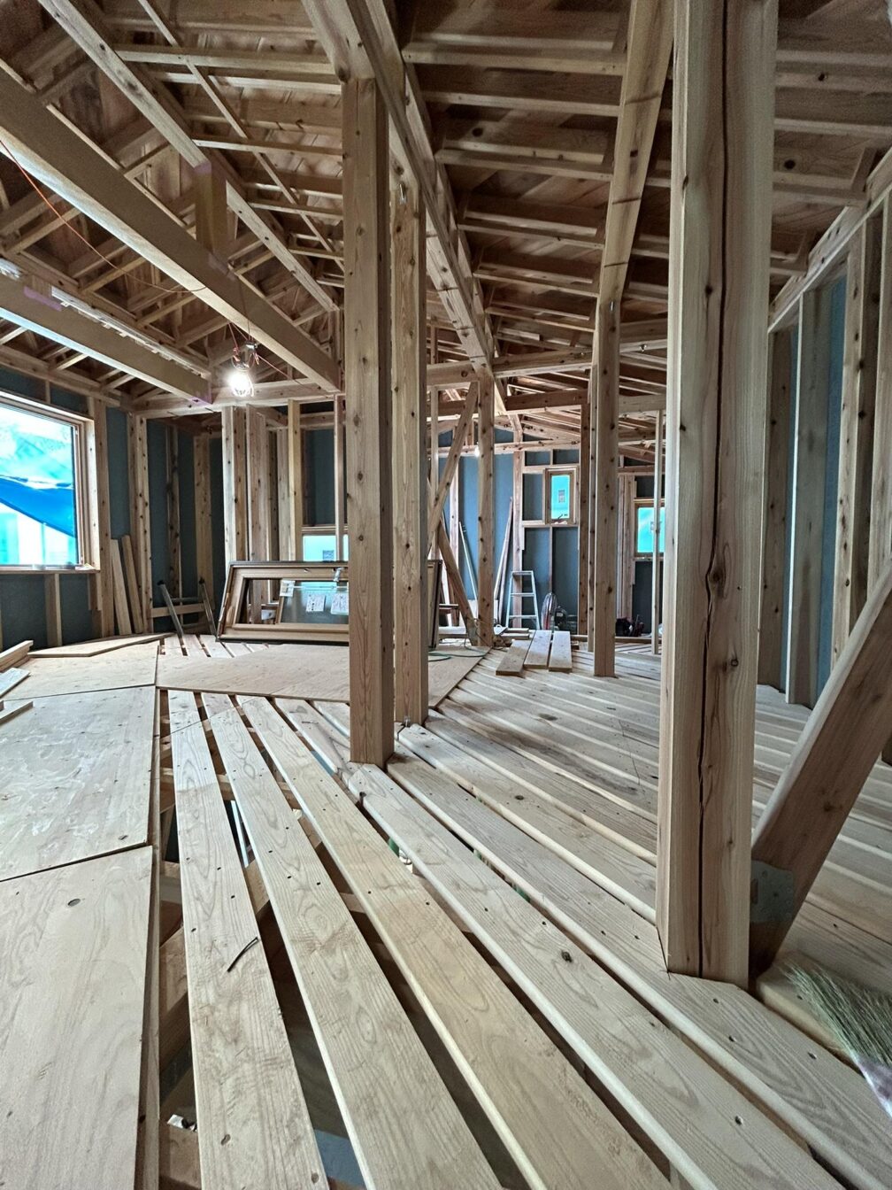 現場は断熱材も一部入ってきている状態で、完成してしまうと見えなくなってしまう部分も見ていただけます。